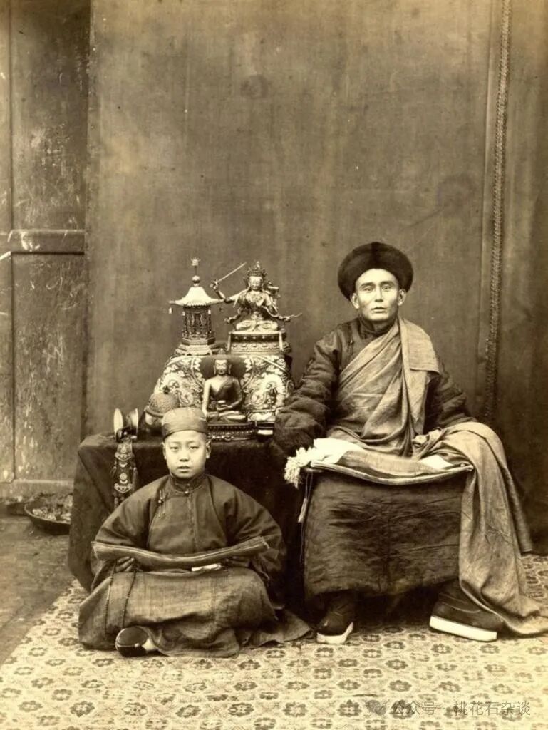 这张照片拍摄于北京,但图中的两人却是两个蒙古喇嘛,拍摄时间在公元1870年到1889年之间。