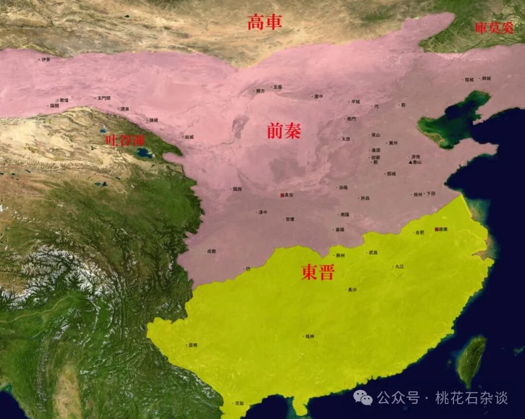 东晋灭亡成汉后与另一个由氐人建立的政权前秦对峙的形势