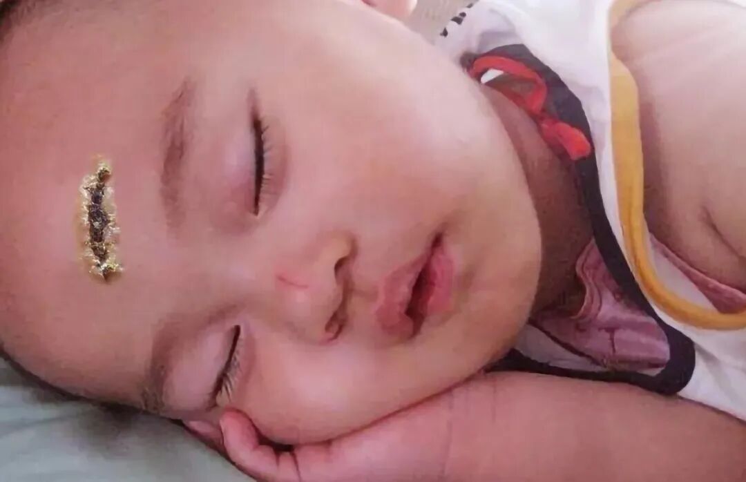 他一下摔倒了,碰到茶几角上,把额头磕出一个大口子,抱去医院缝了几针。
