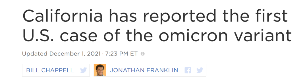 综合12月1日白宫新闻发布会及加州州长纽森发布的信息,这个旧金山病人:- 11月22日从南非旅行回来,- 11月25日开始出现轻微的症状,- 11月28日去做了核酸测试,- 11月29日结果显示阳性。