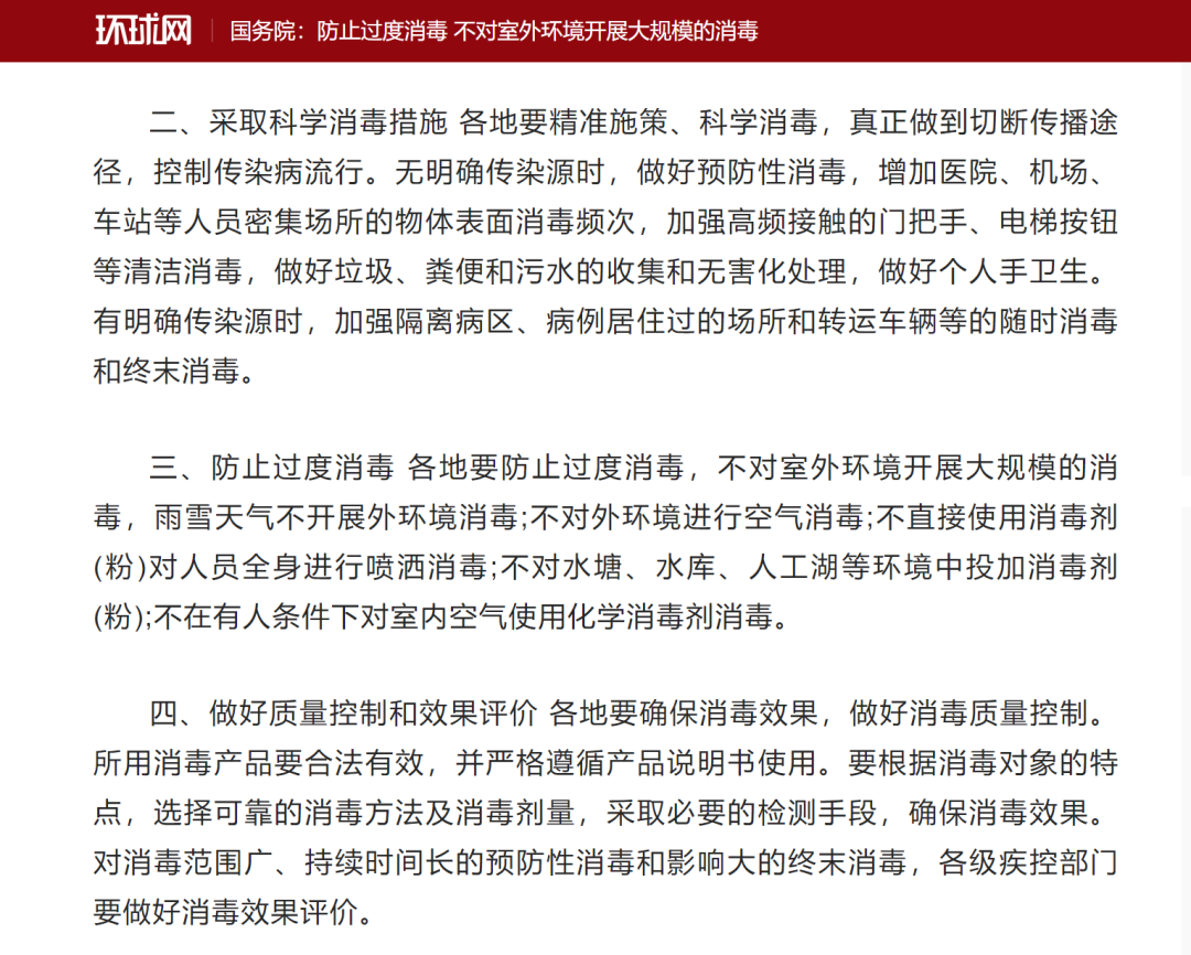 疫情以来全世界都花了大价钱消毒各种物体表面,2020年全球表面清洁剂的销售达45亿美元,光纽约地铁和公共汽车就花了4.84亿美元清洁表面,效果其实极其有限。而在大街小区、食品和包裹外包装上喷消毒剂,实际上浪费了大量资源,更没有实际效果。现在发现新冠病毒主要通过气溶胶传播,就是像烟雾一样弥漫在病人周围。同等情况下,室内传播的风险是室外的近20倍。研究病毒传播的专家Linsey Marr 说,过度消毒会占用我们有限的时间和资源,而本来可以把这些时间和资源更好地用于改善通风或净化室内空气,比如装HEPA空气过滤器,而这些才是有效减少病毒传播的方法。真正有效的方法做起来毕竟比较麻烦,有些地方就偷懒和为了显得做了一点什么,选择了一些不科学、无意义、污染环境的决策。至于在医院和隔离酒店通过核酸测试发现一些物体上带有病毒,发现的几乎都是不具有传染性的病毒的尸体。在有些病例溯源中,发现了物体表面阳性,也很难证明确实是通过物体而不是通过人甚至无症状的病人传播的,而无症状的病人可能几天就自愈了,溯源不到。物体传播病毒的情况不能排除,但应该比较罕见。还有,疫情早期有文章发表了新冠病毒能在门把手或室外存活多少小时等数据,但要注意的是这些都是在实验室条件下用大量的病毒来做的试验,和现实场景相差悬殊。文章强调,新冠病毒传播,最主要的还是人和人之间的传播。世界卫生组织和国务院抗疫组对全面消杀的观点也类似。世卫指出,不建议在户外针对新冠病毒或其他病原体采取大规模喷洒或熏蒸措施,因为户外并非病毒的传染途径。这样做是无效的,因为污垢或垃圾等物质会使消毒液失去效用。化学喷洒也不太可能充分覆盖表面,由于接触时间过短而无法杀灭病原体。《国务院应对新型冠状病毒肺炎 疫情联防联控机制综合组》的通知明确指出要“防止过度消毒”,而且具体说了“各地要防止过度消毒,不对室外环境开展大规模的消毒,雨雪天气不开展外环境消毒;不对外环境进行空气消毒。”