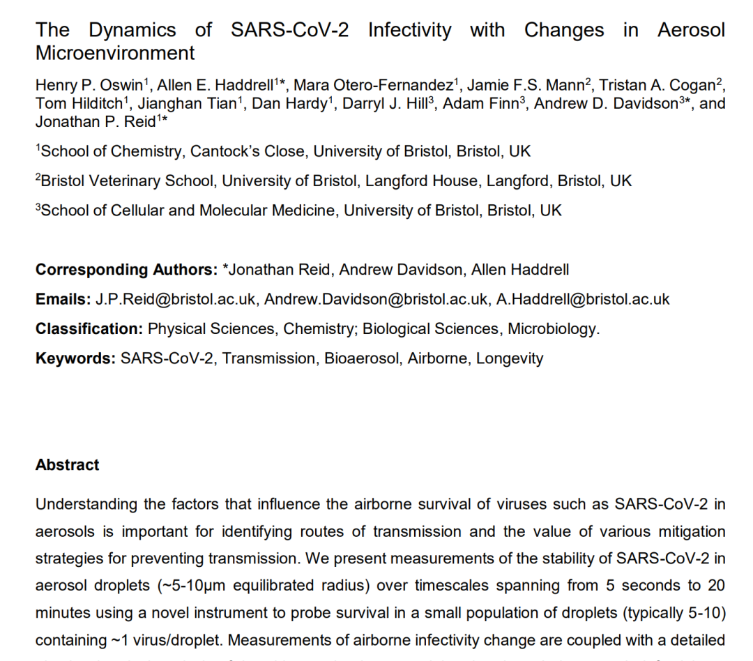这是英国布里斯托尔大学的“气溶胶研究中心”刚发表的一篇预印本论文。
