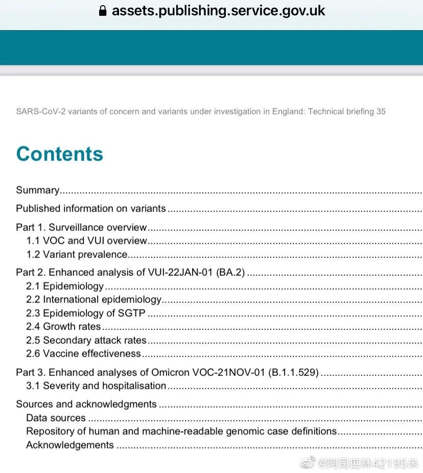 现在妹妹BA.2已经在某些前沿的国家比如丹麦和印度占据主导地位,并正在其他地区蔓延。据贝德福德教授估算,目前妹妹在丹麦约占82%,美国约为 8%。英国公共卫生部1月28日发表了专门分析妹妹BA.2的报告。