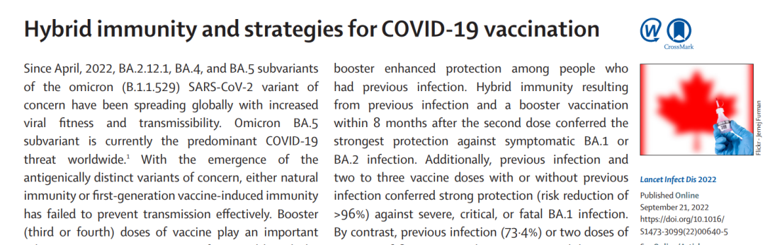 杂志特意为此写了一篇有关“混合免疫力”的评论文章: