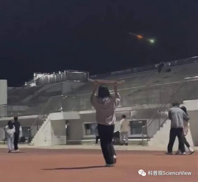 河北石家庄一所大学的学生正在操场散步,走着走着,突然看到天空出现了诡异的一幕。一个发着绿光的物体,毫无征兆地出现在了天空。