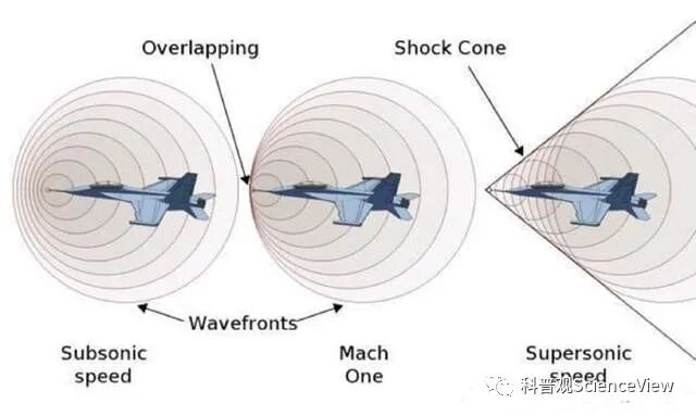但是飞机在超音速飞行的过程中,飞机的飞行速度大于本身发出的噪声的速度,此时,这些音波便会被飞机甩在身后。