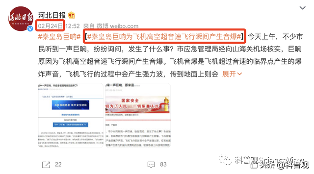 而后来经过相关专家的调查发现,“神秘巨响”产生的原因最终被找到,皆系飞机在高空超音速飞行瞬间产生的音爆。