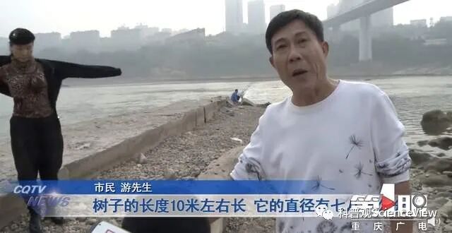 近日,重庆沙坪坝区的嘉陵江边,一位姓游的先生在散步的时候,突然在嘉陵江边发现了一根巨大的枯木。