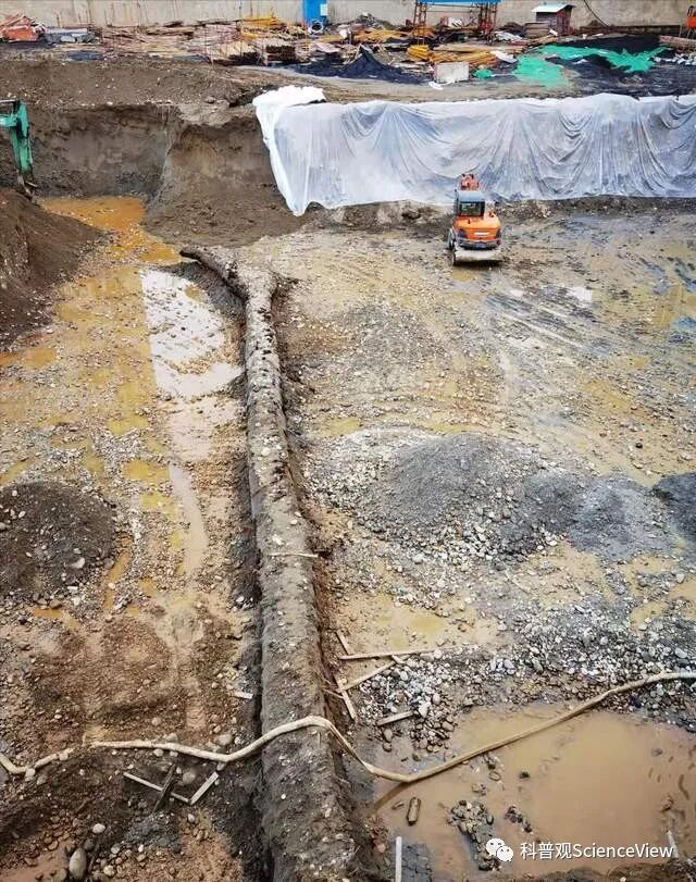 后来挖开检查发现,这个深埋地下的异物,竟然是一根巨大的树木。