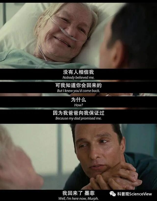 男主角从黑洞出来,重新返回地球后,他的女儿竟然已经变成了白发苍苍的老人,而他自己却依然保持着当初进入黑洞时的样子。