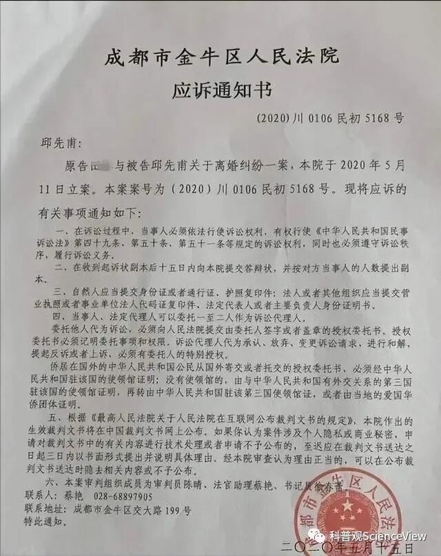 而等到2014年,邱先甫的妻子田丽更是突然瞒着他,向法院提出离婚诉讼。