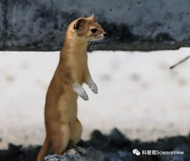 于是黄鼠狼就用后肢站立的方式,来扩大视野以便观察环境,搜寻猎物。