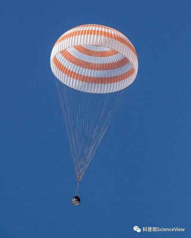 为了给返回舱减速,全世界的返回舱,基本都是采用降落伞减速的方式,神舟十四号返回舱同样也不例外。