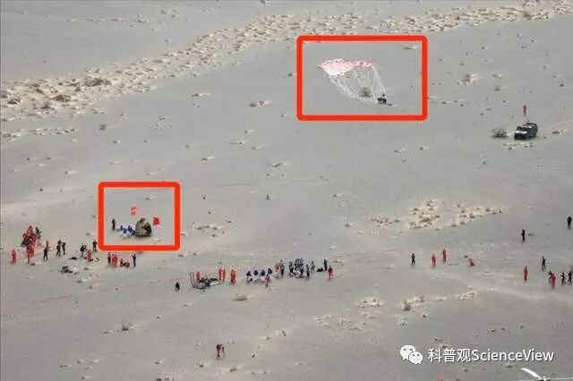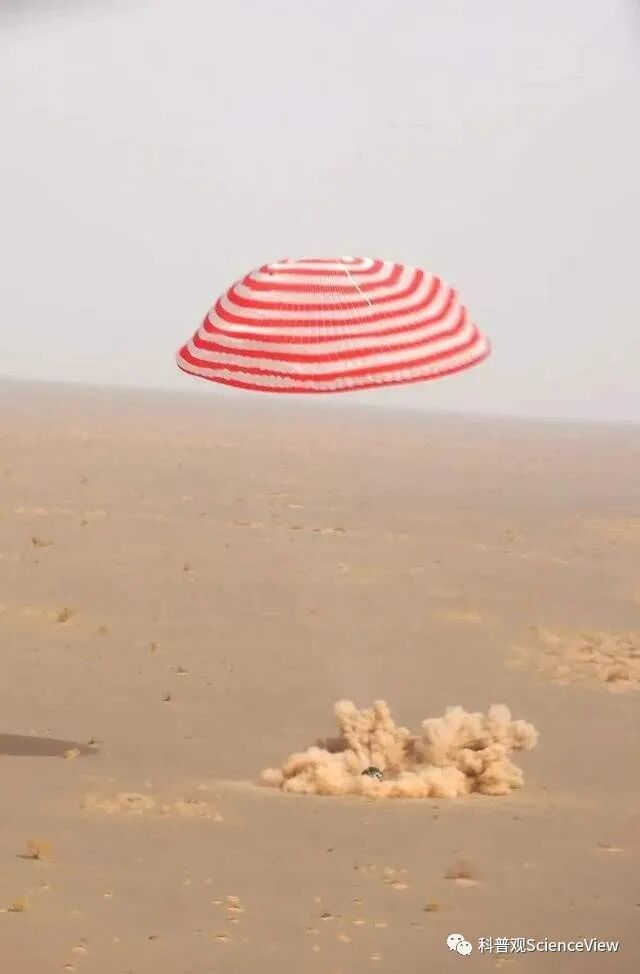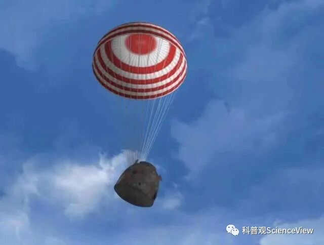 返回舱降落时开启后,截止到反推发动机开启反推减速时,降落伞的使命便已经全部完成。