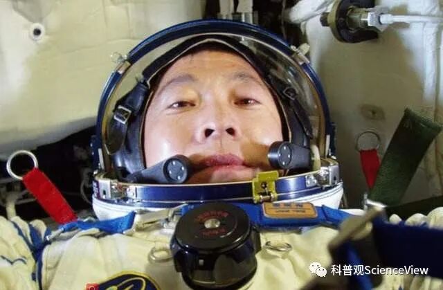当时杨利伟为了方便跟地面控制人员取得联系,头上佩带着耳麦。