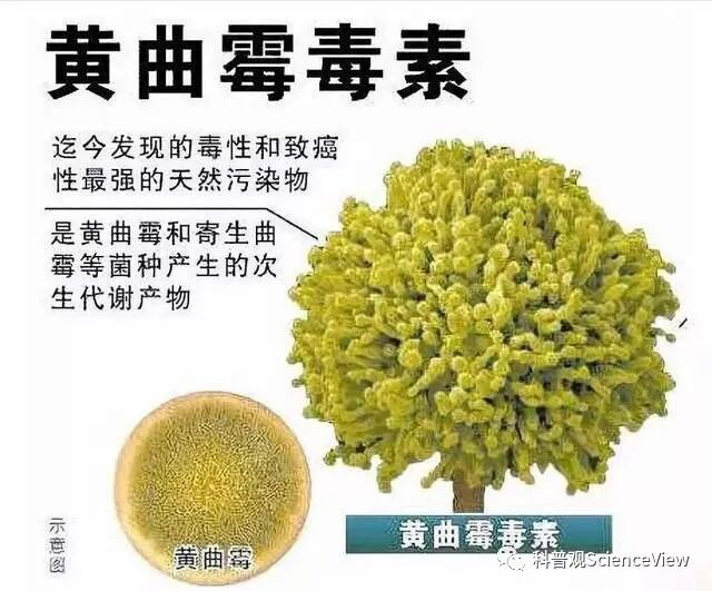 黄曲霉跟黑曲霉一样,虽然都是霉菌,但黄曲霉代谢产生的黄曲霉毒素,却是一种毒性非常强的剧毒物质。
