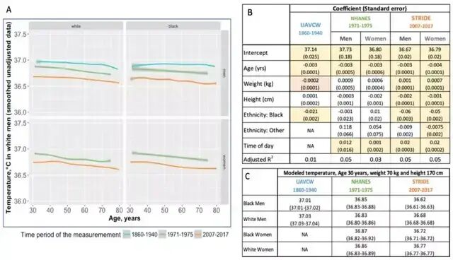 这是相关研究人员,对自1860年以来,收集的677423余份体温数据进行整理分析,最终得出的结论。