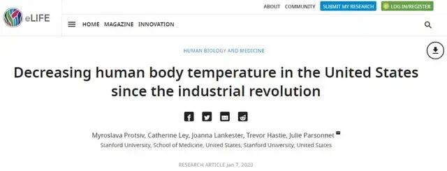 事实上,关于人体温度下降的问题,早在2020年的时候,就已经有科研人员注意到,并对此进行过细致的调查研究。