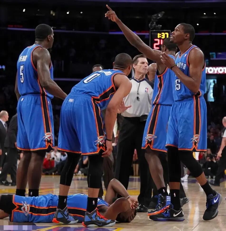 时间回到2012年4月23日,当时湖人以114-106逆转雷霆,上半场只剩了1分37秒,湖人队的阿泰斯特持球发起快攻,想彻底锁定胜局,在雷霆队的围追堵截之下,阿泰斯特一路强突最终成功突围暴扣拿下关键比分。