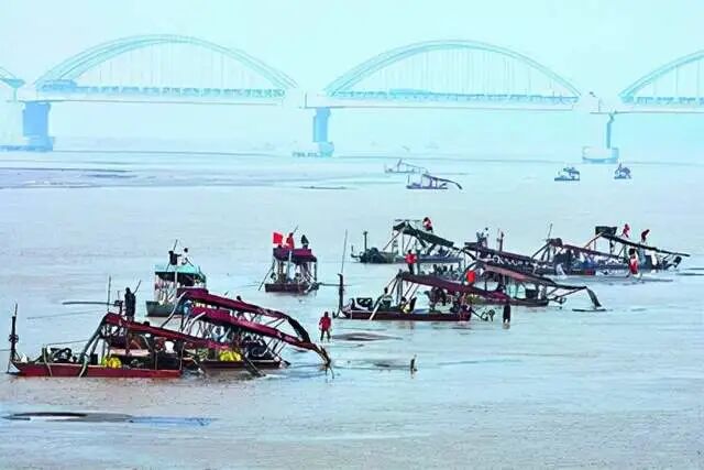 先拿2008年郑州黄河二桥的“淘铁砂热”来举例,前面大川提到了,在当时郑州黄河二桥附近,每天甚至能看到多达300艘的采砂船共同作业。