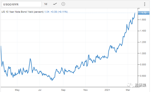 十年期美债利率暴涨4.85%+ 一举突破1.7%,高达1.72% 还在不断上涨中!