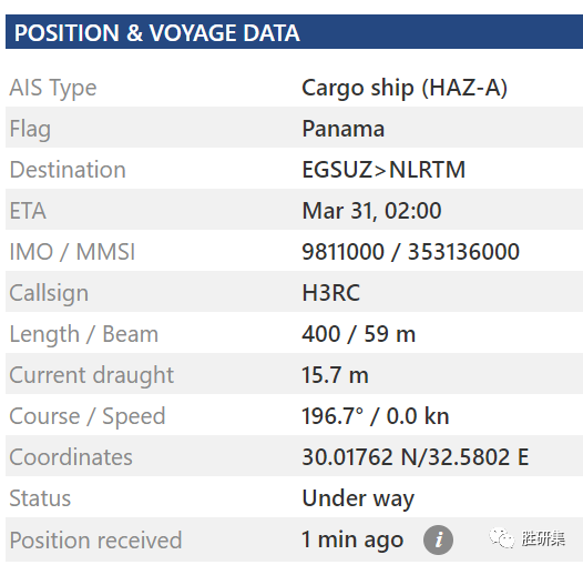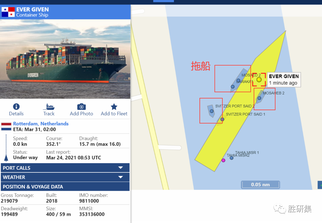 从最新预期到达时间ETA看,到达鹿特丹港的时间是3月31日2时,这意味着很可能该船需要一周才能走出苏伊士运河。