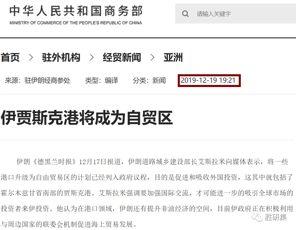 早在2019年,霍尔木兹海峡之外的贾斯克港就已经成为伊朗向中国出口石油的主要港口,并将建设中伊自贸区。