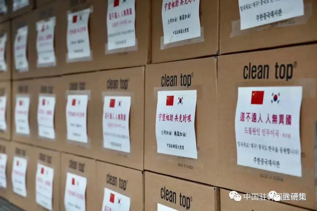 运送爱心口罩的货车悬挂着新罗旅唐学者崔致远“道不远人、人无异国”的名句和“大邱加油!韩国加油!”的醒目横幅,以最快速度踏上征程,驰援大邱一线。