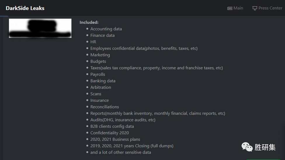 DarkSide还告诉受害者它将提供其已获取数据的证据,列出了其已窃取的所有数据类型,并向受害者发送了“个人泄漏页面”的URL。