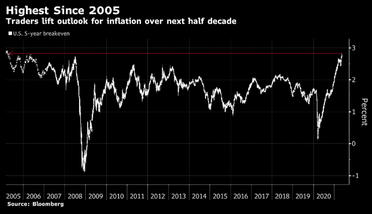 根据美联储去年提出的平均通胀目标(AIT)框架, 美联储致力于在未来一段时间内实现通胀率适度高于2%的目标,使长期通胀预期保持在2%的水平。