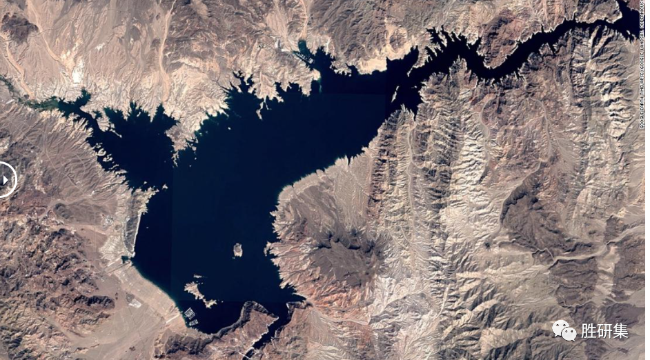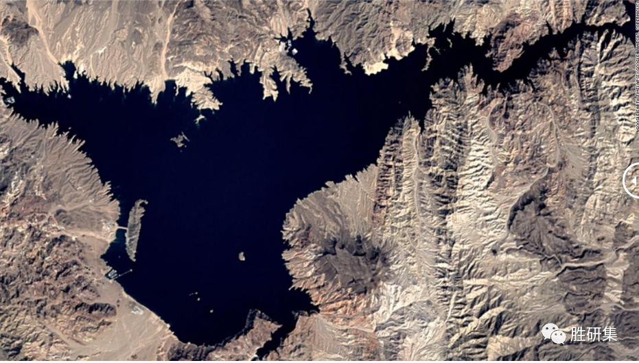 从卫星图上看,米德湖的面积20年来已经缩小到原来的1/3左右。