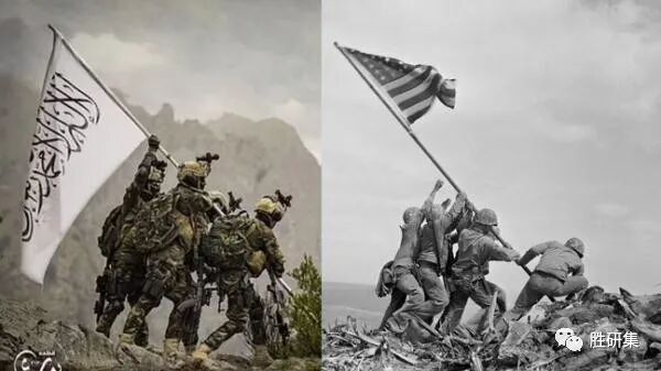 最近,该部队摆拍的一张宣传照片,似乎在挑战着美国人——在这张照片上,来自该作战营的武装人员高举塔利班的旗帜,模仿着二战期间“美国国旗插上日本硫磺岛”的著名场景。