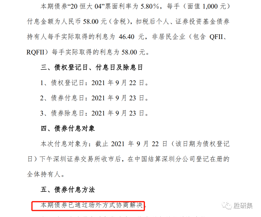9月22日深陷财务困境的中国恒大旗下恒大地产集团周三早间发布公告称,所发公司债“20恒大04”将于9月23日(周四)付息,付息方法已通过场外方式协商解决。