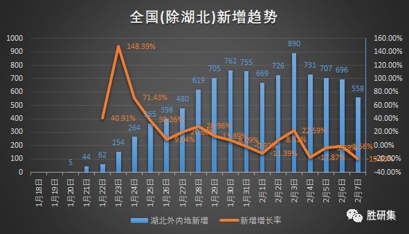 全国的新增病例数量下降趋势明显,2月7日仅有558例。