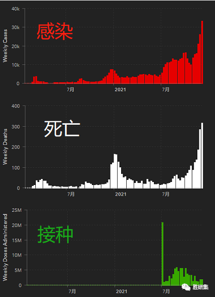 7月开始接种疫苗之后,疫情反而直线上升,特别是死亡率,在接种接近完成的时候突然爆发!