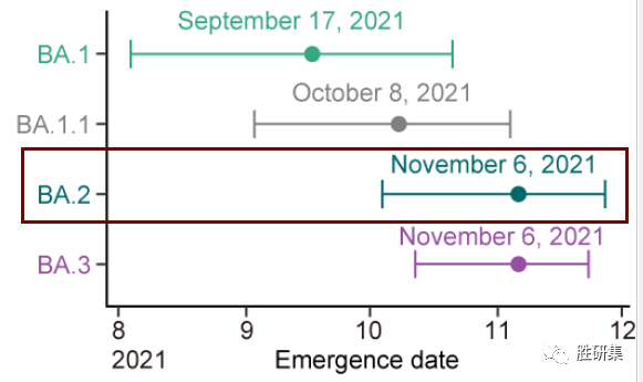 据世卫组织,奥密克戎已发展出多个亚型变异株,包括BA.1、BA.1.1、BA.2和BA.3,BA.2基因组最早发现于2021年11月6日被发现,27日提交的一份样本。