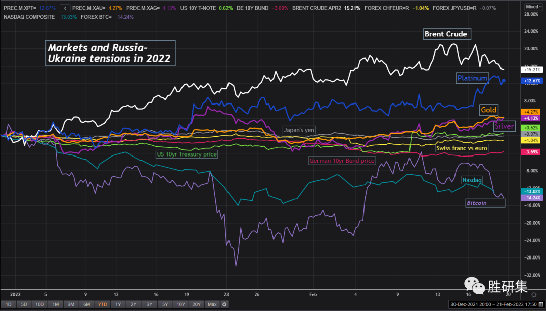 即使乌克兰冲突可能导致进一步刺激油价从而引发通胀,也不能阻挡资产流入避险市场。
