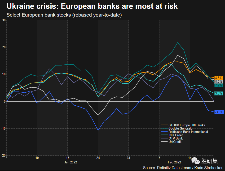 欧洲银行业者在乌克兰危机中面临的风险最大