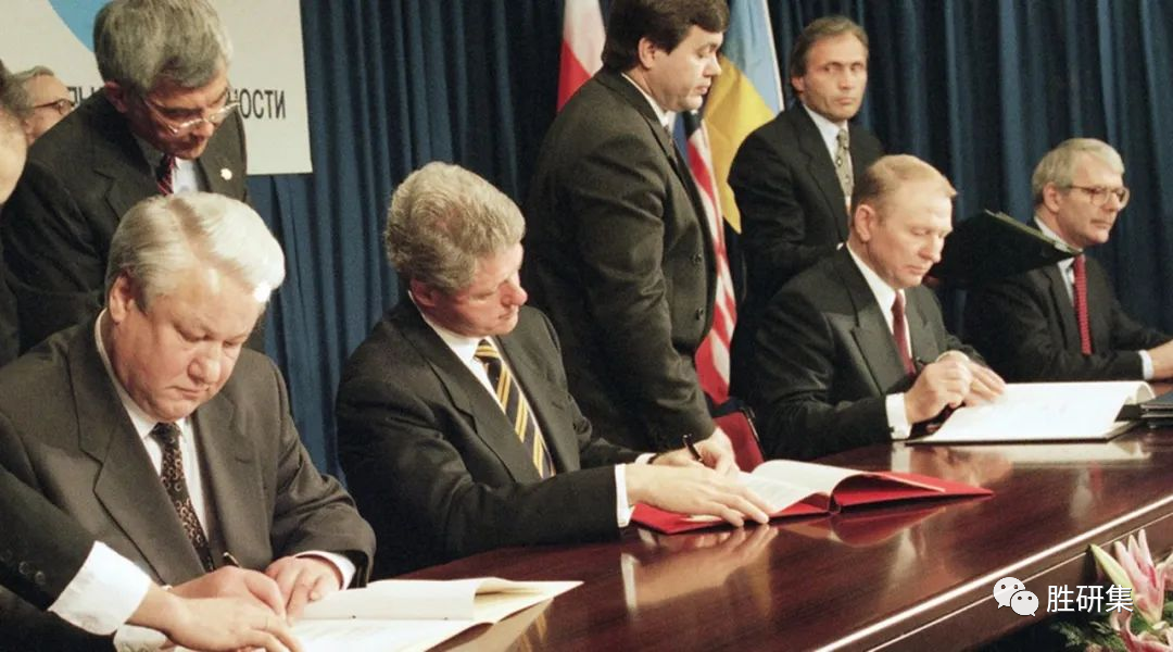 1994年12月5日,美国总统克林顿、英国首相梅杰、俄罗斯总统叶利钦、乌克兰总统库奇马签署了《布达佩斯乌克兰安全保障备忘录》乌克兰承诺加入《核不扩散条约》,放弃核武器。