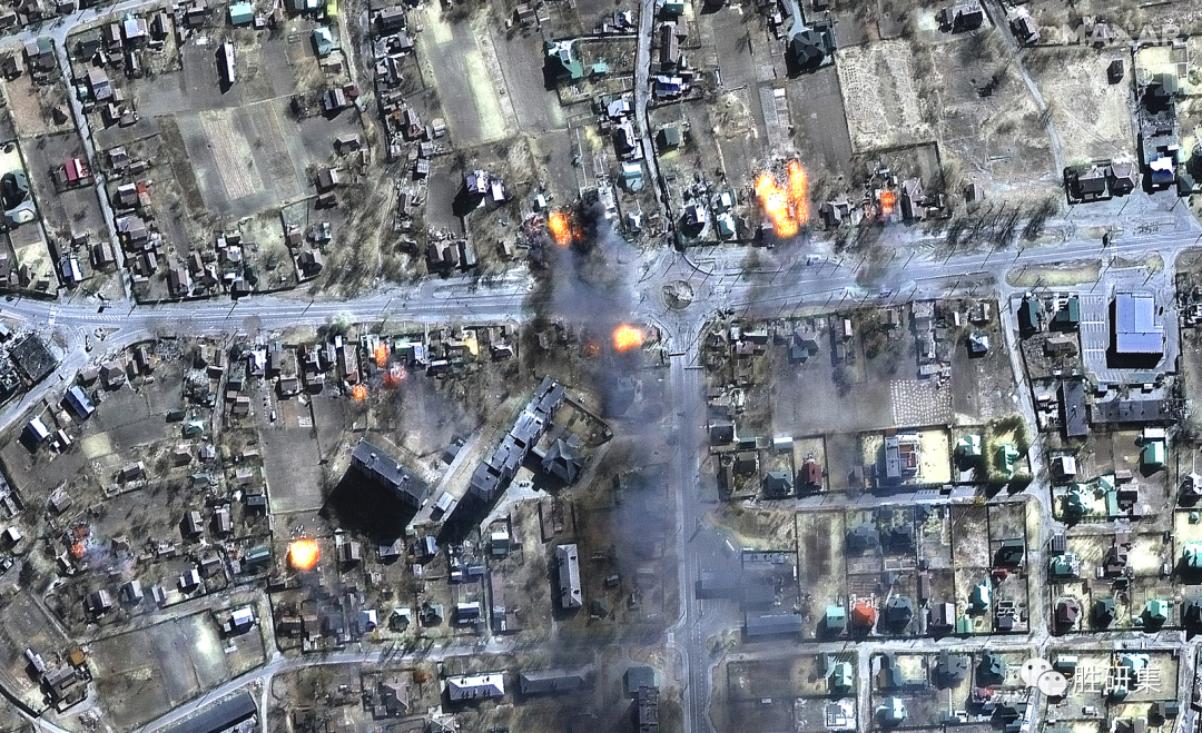 这是昨天的高分卫星图,爆炸起火点清晰可见,整个城市已经一片狼藉。