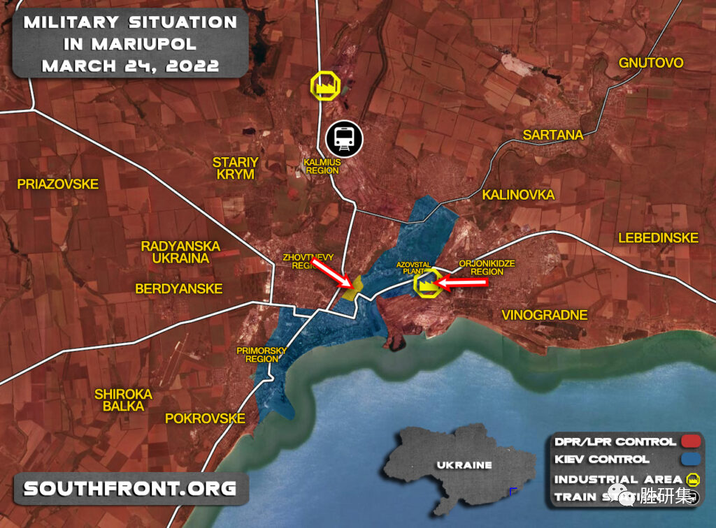 马里乌波尔失去左岸地区后,被压成为一个长条,俄军正在从两个方向企图凿穿剩下的半个城市。