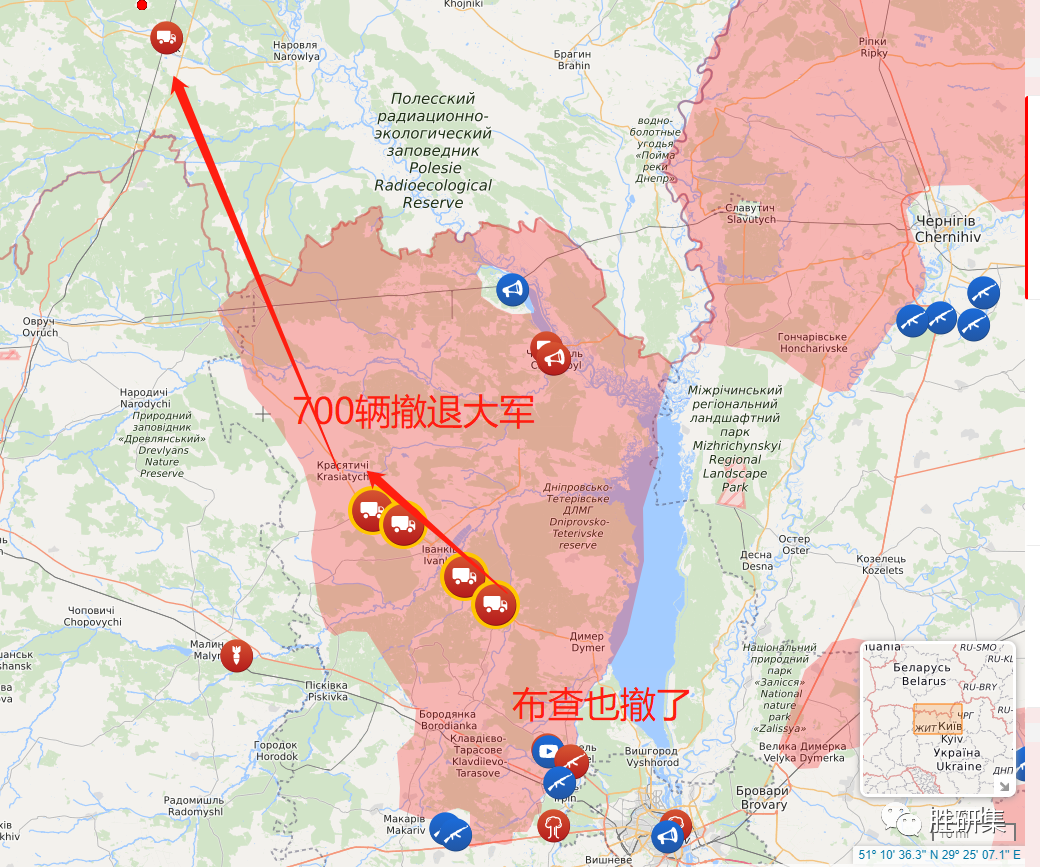 乌克兰地面部队司令部称,他们已经统计到“有近700台车辆向伊万科夫、向白俄罗斯边境撤退”。
