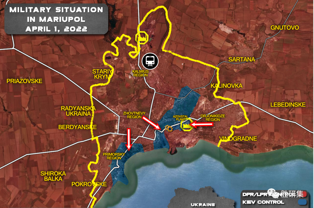中心区、Azovstal工厂和位于普里莫尔斯基区的马里乌波尔港。
