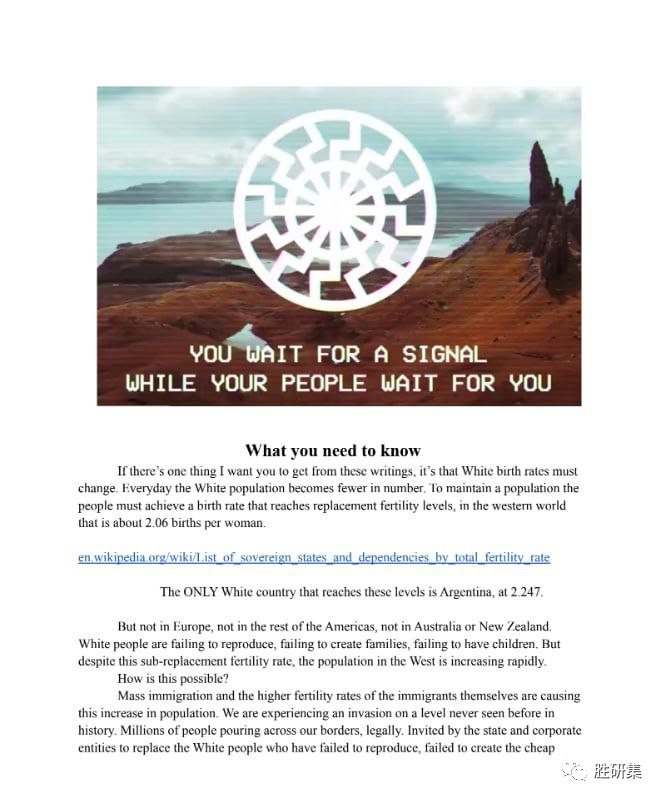 这家伙还用黑太阳标志发了法西斯声明,白人至上言论!