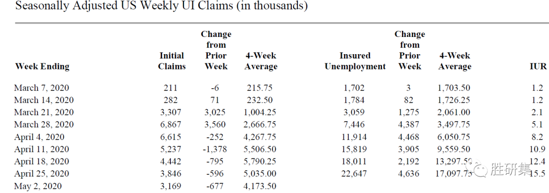 根据上表,截至5月7日,在过去七周里,美国初请失业救济金人数累计达到3348万人。