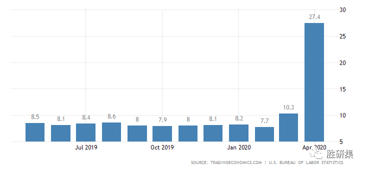 美国四月失业率数据出台了, 14.7%, 预期16%, 大超预期!