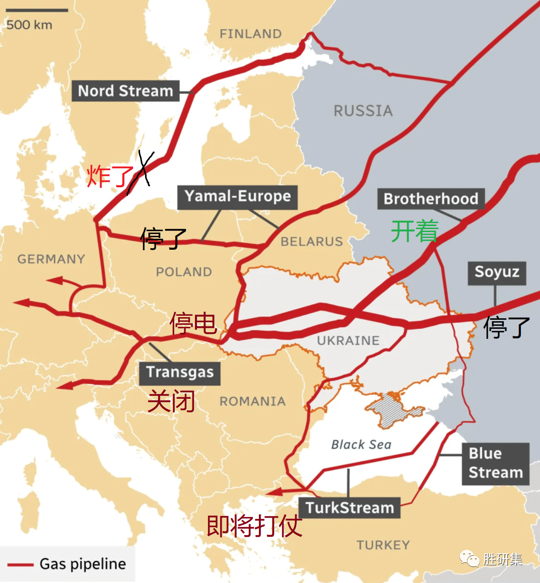 也就是说欧洲北部管线基本上都停了,只剩下经过乌克兰的生命线!