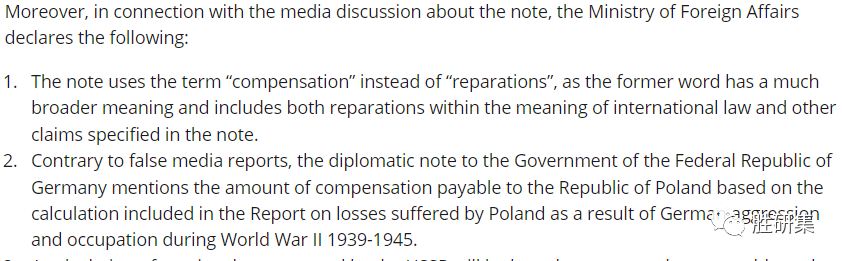 2、与虚假的媒体报道相反,给德意志联邦共和国政府的外交照会提到,根据《关于1939-1945年第二次世界大战期间德国侵略和占领造成波兰损失的报告》中的计算,应向波兰共和国支付的赔偿金额。