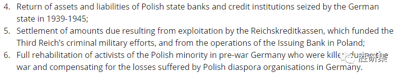 4、归还1939-1945年被德国政府没收的波兰国有银行和信贷机构的资产和负债;