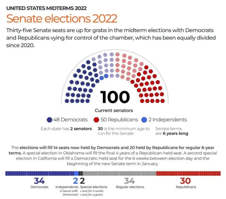 今年有 35 个参议院席位可供争夺,约占 100 个席位的三分之一,基本就是拜登执政生命线!
